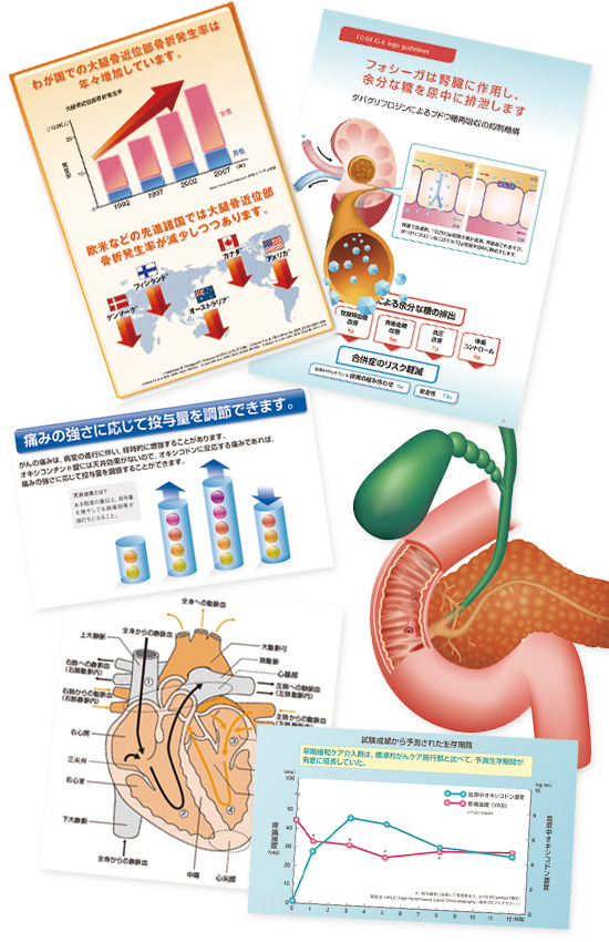 メディカルメディアの分野で特に重要である細かなグラフや図表、説明的なビジュアルなど。